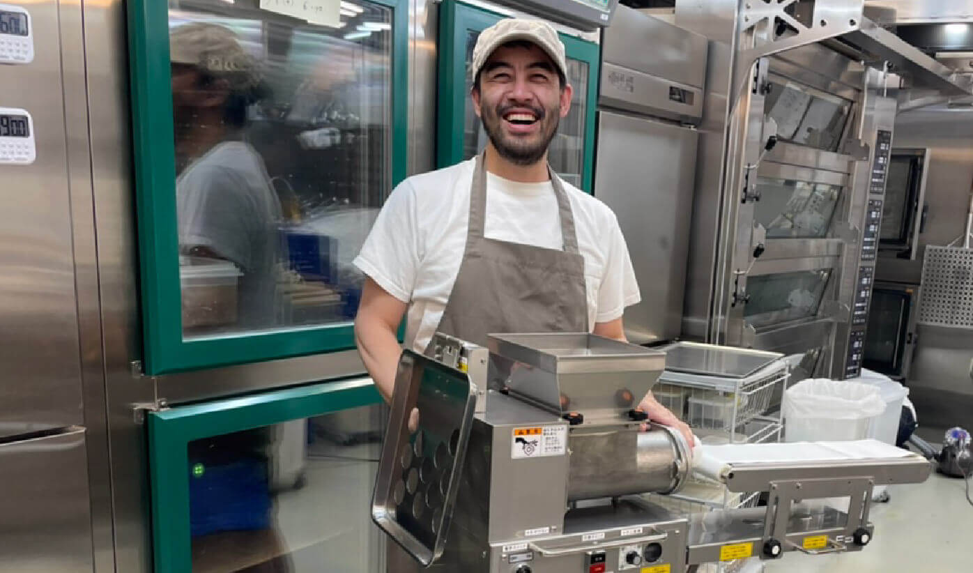 「他の商品とのバランスを考えて6〜9月の少し落ち着くタイミングで仕込みます。忙しい時でも安心出来るからいい。どの生地もブレずにつくれる。チョコチップも空洞にならないから効率化で数種類増やしました」。商品開発にもお役に立てているようです。