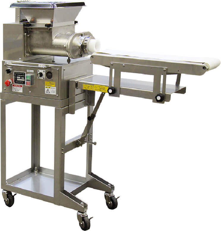 均一なアイスボックスクッキーの製造を省力化。サクッと食感、口溶けの良いクッキーをラクラク棒状成形します。個人店様向きに設計しており、単相100Vの電源で動く番重サイズのコンパクトな機械です。