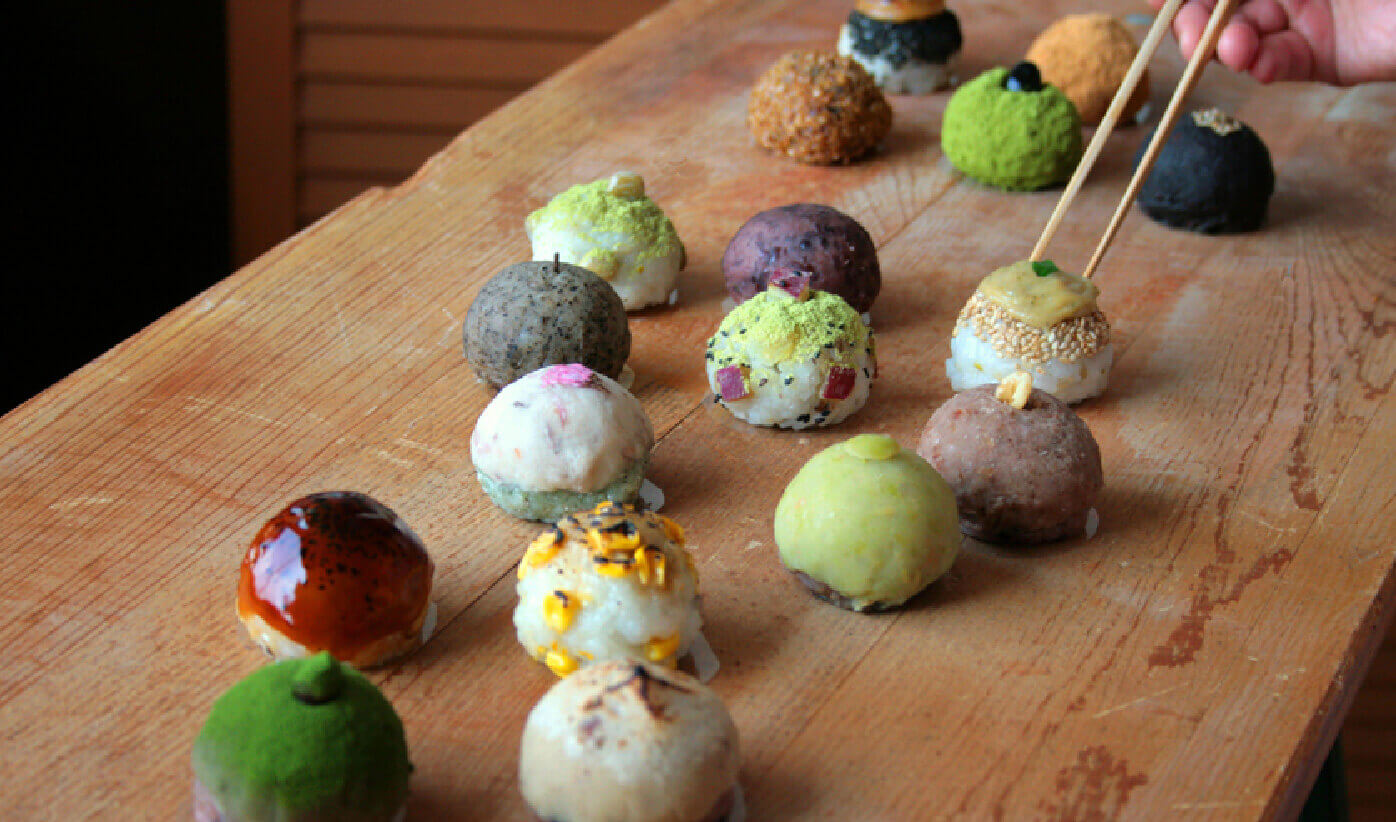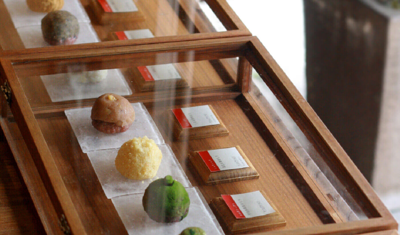 ショーケースに並ぶカラフルな一口サイズのおはぎは、見ているだけで心が弾みます。「いつものおはぎ」とはちょっと違う存在感。それもそのはず、素材の味を引き出すために種類ごとに違った甘さの餡を炊き上げる徹底ぶり。おはぎ好きの方にはもちろん、老若男女問わず喜ばれる逸品です。
