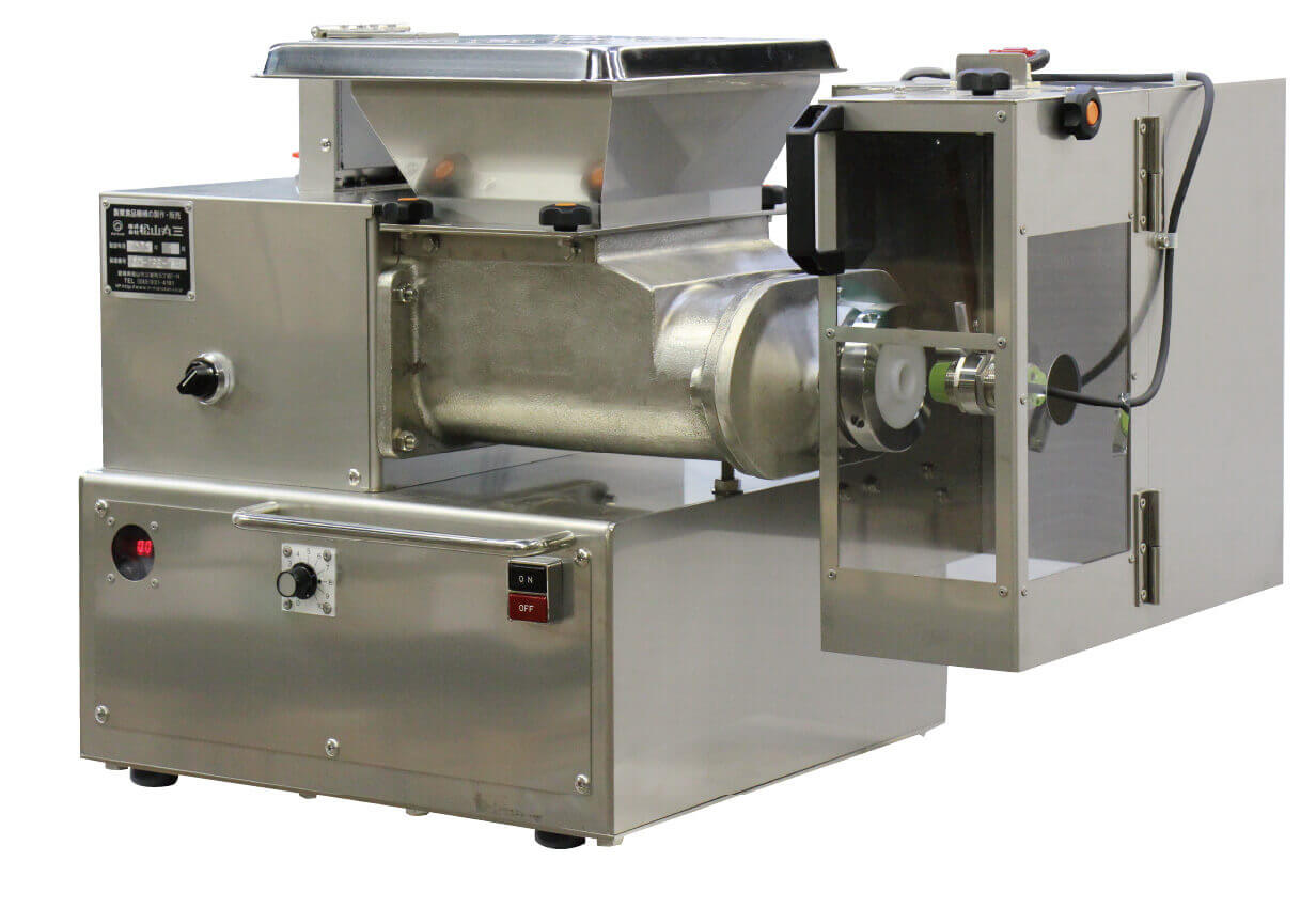 手間のかかる分割作業を省力化します。餡、団子、クッキー、タネ等のさまざまな生地を定量に分割します。個人店様向きに設計しており、単相100Vの電源で動くコンパクトな機械です。卓上でも使用できます。