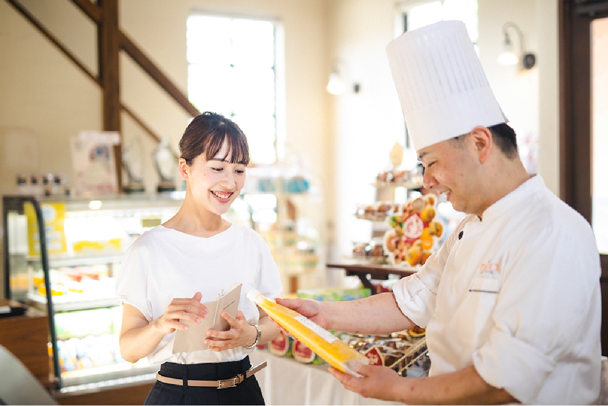 スイーツやパン、食べ歩きが好きな方は向いていると思います。お客さまへのご提案にも説得力が増しますし、何より仕事上で好きなものに触れたり、知識が増えることは、仕事の楽しさやモチベーションに繋がります。また、社内の雰囲気ですが、社長を含め上司や先輩社員との距離が近く、困ったときも迅速にサポートしてくれますし、良い意味でフランクな職場だと思います。自分のやりたいことを気兼ねなく相談でき、自分らしく働くことができます。
